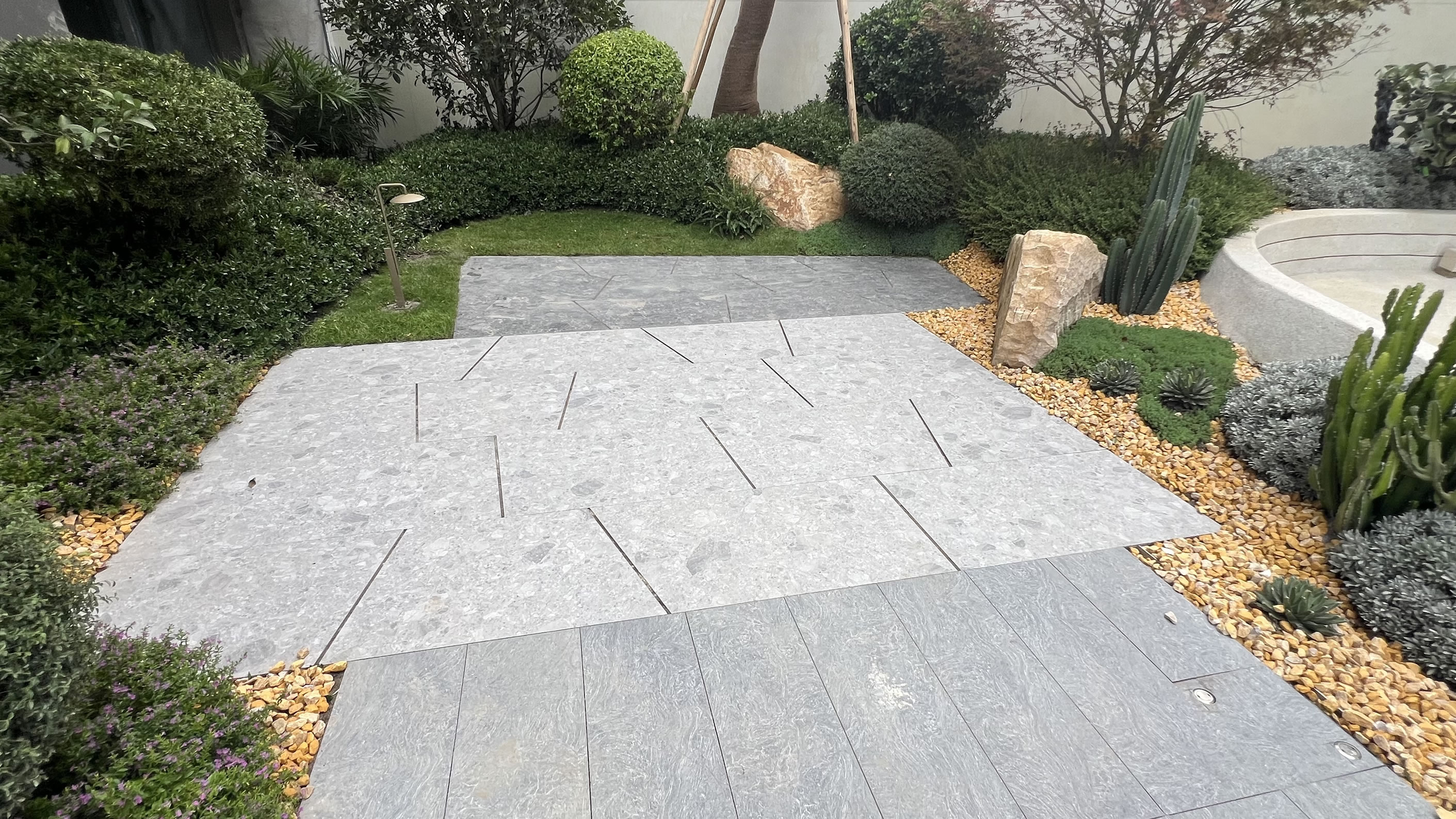 別墅,庭院的鋪裝材料,已經(jīng)越來越多的從石材轉(zhuǎn)變?yōu)槭⒋u。